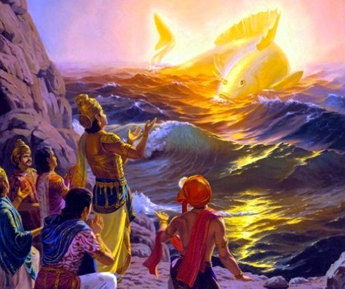 A depiction of the 'Pralaya' or Great Flood, from the Matsya Purana