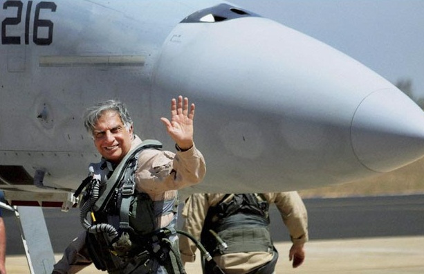 Ratan Tata at the Bangalore Aero Show, 2013. The Tata Group is a major player in both mining and defence manufacturing.