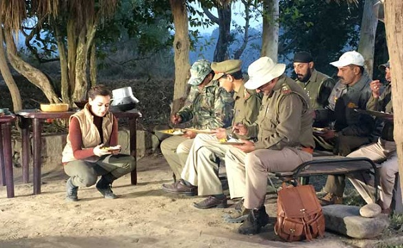 Actress Dia Mirza with forest rangers at the Rajaji National Park, Uttarakhand