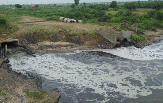 Untreated effluents dumped into Sabarmati downstream of Vasna barrage, which is the dead-end of Sabarmati Riverfont