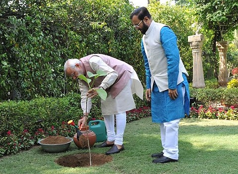 Prime Minister Narendra Modi with former environment minister Prakash Javadekar